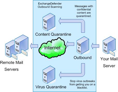 Virus Scan - ExchangeDefender uses up to six different virus scanning engines to determine if any of the attachments contain viruses. If we find a virus we will comply with your policy (delete, disinfect, quarantine) or we can silently dispose of the message. Spam Scan - Here we pass the message through thousands of tests to determine if it is a SPAM or a valid/clean email. Because of the number of anti-spam techniques used in this process we average 98% spam identification with less than 0.000004% false positive ratio (legitimate messages treated as junk mail). Content Scan - This is the most comprehensive portion of ExchangeDefender and the most flexible because it includes the ever evolving message intelligence part of the service. We can determine if messages contain adware or spyware, if they are "phishing" with fraudulent content, if they contain adult or foreign content not suitable for your users or if they are simply things you wish not to read. As you can tell, ExchangeDefender is very flexible to give you the level of scrutiny you need to process your email. Instead of spending your time analyzing each message you can establish rules for yourself, your department or your entire company and have them applied automatically and reliably. ExchangeDefender provides outbound content filtering as a core component of your email infrastructure. By routing all your outbound mail through ExchangeDefender outbound servers you can restrict SMTP connections to your mail servers and offload virus and content scanning onto a server connection you can control. By scanning each message for virus content we can keep you from blacklists and minimize the chance of your server being added to a blacklist.